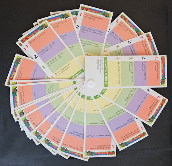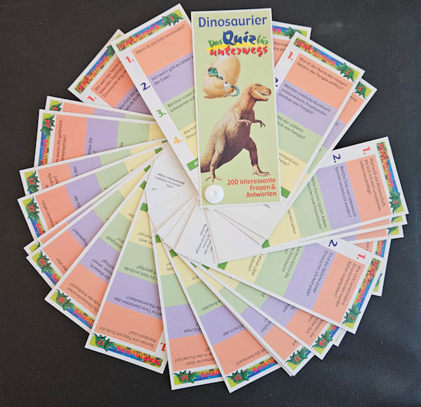 These cards were included in a German kids dinosaur learning kit which includes two books, a quiz "fan", and this deck of cards.  I am guessing that the cards could be obtained separately from the learning kit though I currently have to proof of that assertion.