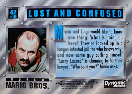 These cards pay homage to the ill-fated 1993 Super Mario Bros. film including stills and frames from the final cut of the film along with a couple of cut-scene cards.