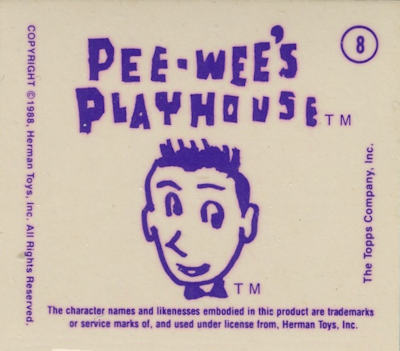 These cards were included in the Topps "Pee Wee's Playhouse Fun Pack" card packages that, in general, included: 1 tattoo sheet, 3 picture cards, 1 sticker, 1 wiggle toy, and 1 activity card.  This series of cards are thick "lenticular" double-imaged cards that change as you tilt or "wiggle" them.