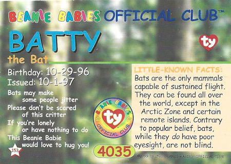 54115 Beanie Babies 152 1 3-1/2" x 2-1/2" n/a