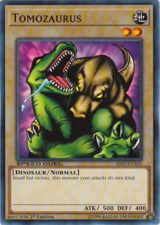 Given the focus of The Dinosaur Fan is extinct critters, I did not want to add over 300 different Yu-Gi-Oh! card sets which may or may not include dinosaurs or other extinct animals. Below is a list of those cards which are classified as the Type 'Monsters' with a Sub-type of 'Dinosaur'.  In addition, I've included miscellanous cards that are applicable to this site but which are not part of the Monster/Dinosaur series (see footnotes below).