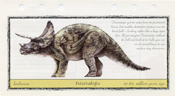 Fun Fax released "The Lost World: Jurassic Park Data File" mini-binder in 1997 as a tie-in with the movie of the same name.  The mini-binder contains the six sections listed below.  I do not know if every mini-binder contains the exact same contents.  For the purposes of this site, I've only included relevant Fact Sheets and the Tetley tea coin holders (see Tetley tea listings) but there is a lot of funs stuff to be found.