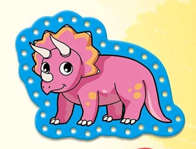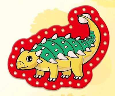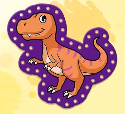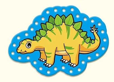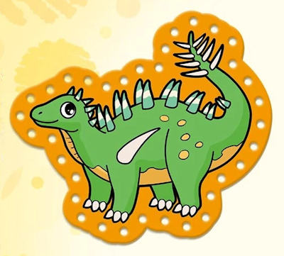 These are single-sided lacing cards in the shapes of dinosaurs designed for young children.