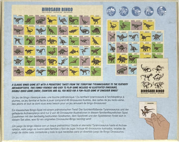 These cards serve as caller tokens to track what dinosaur has been called.  They are the equivalent of the numbered/lettered Ping-Pong balls used at Bingo halls.  The round Marker Chits (image below) are used to mark player cards in place of the ink daubers used in traditional Bingo games.