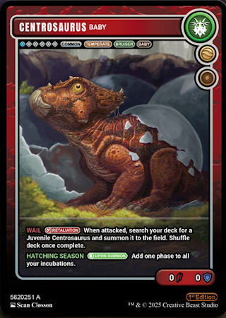 According to Creative Beast Studio, "Zoic combines both past and future in ground-shaking primeval battles: testing your wit, strength and strategy. Featuring dinosaurs and prehistoric beasts of Earth’s past and the Dragons of Gaea 2’s future, you can collect, customize and battle in the massive action packed battlegrounds of the Zoic Trading Card Game.  In this game, 2-4 players Battle it out, using a variety of Beast, Biome, Attachment, and Utility Cards to defeat their opponent’s Beasts and be the first to drop the other’s Health Level to 0."