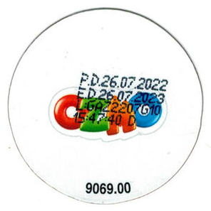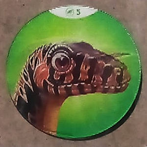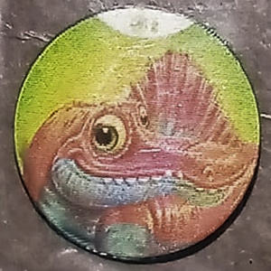 These POGS were inserted in individual Ozmo Cornet ice cream cones. There were three separate sets consisting of 10 POGS each.  Each set has a different color background (i.e., blue, green, red).  There are at least four different background colors on the reverse of the POGS which most likely relate to the packaging of each ice cream/cone flavors.