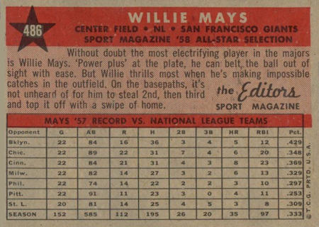 Willie Mays '58 All Star Selection (#486)