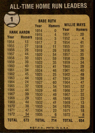 Alltime Home Run Leaders (Babe Ruth / Hank Aaron / Willie Mays) (#1)