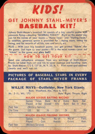 1954   Stahl-Meyer Franks   New York Baseball Cards (F157)