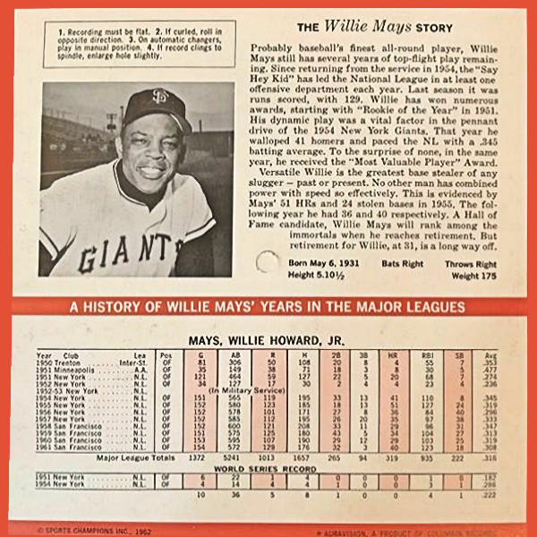 1962   Auravision Records   Sports Champions 33 RPM Cardboard Records
