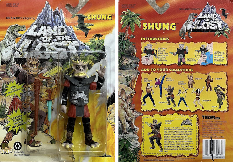 These are cutout cards from the packaging of Land of the Lost action figures.