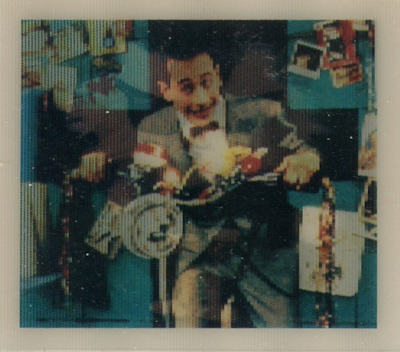 These cards were included in the Topps "Pee Wee's Playhouse Fun Pack" card packages that, in general, included: 1 tattoo sheet, 3 picture cards, 1 sticker, 1 wiggle toy, and 1 activity card.  This series of cards are thick "lenticular" double-imaged cards that change as you tilt or "wiggle" them.