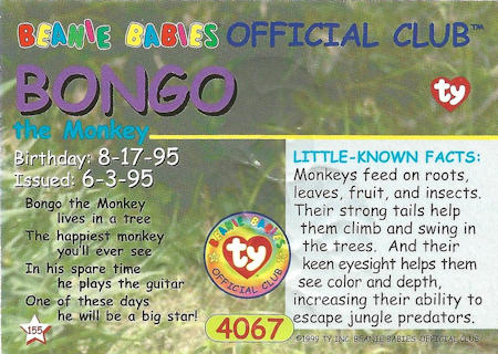 54122 Beanie Babies 159 1 3-1/2" x 2-1/2" n/a
