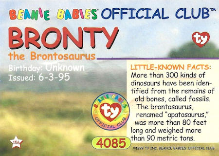 54119 Beanie Babies 156 1 3-1/2" x 2-1/2" n/a Bronty (Beanie Babies)