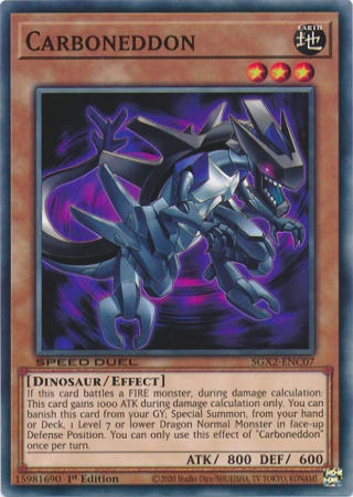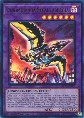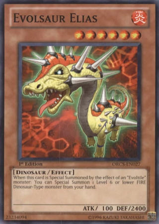 Given the focus of The Dinosaur Fan is extinct critters, I did not want to add over 300 different Yu-Gi-Oh! card sets which may or may not include dinosaurs or other extinct animals. Below is a list of those cards which are classified as the Type 'Monsters' with a Sub-type of 'Dinosaur'.  In addition, I've included miscellanous cards that are applicable to this site but which are not part of the Monster/Dinosaur series (see footnotes below).