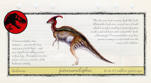 45860891 Jurassic Park -- 1 3-3/4" x 6-5/8" n/a Parasaurolophus