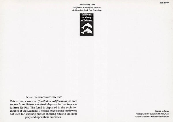 45907144 Extinct Life -- 1 3-1/2" x 5-1/2" n/a Smilodon