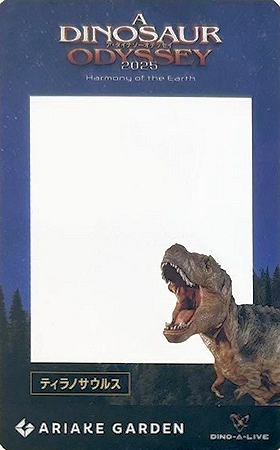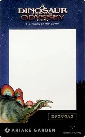 From what I can tell, these predominately clear plastic cards were handed out (or sold?) at the 2025 performances of Dino-A-Live: A Dinosaur Odyssey ('Harmony of the Earth') presented at the Ariake Garden, a Japanese shopping and entertainment complex in Tokyo Bay (Kantō region, Japan).  My assumption is that these are clear so that attendees of the show can display photos of themselves with the animatronic dinosaurs.