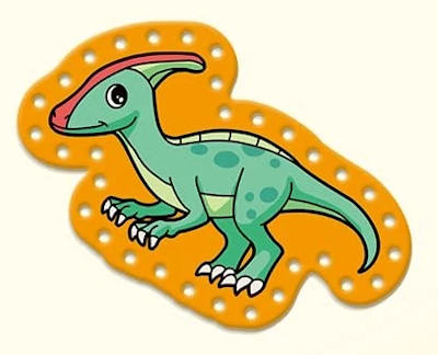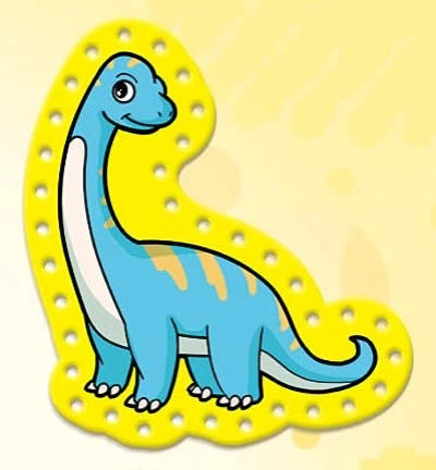 These are single-sided lacing cards in the shapes of dinosaurs designed for young children.