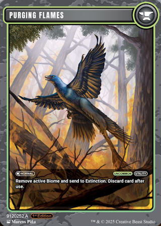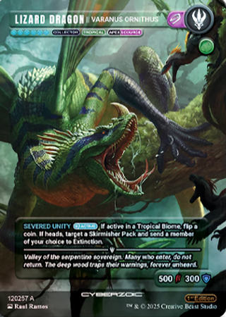 These are the cards used to play the Zoic Trading Card Game and include dinosaurs, extinct mammals, dragons, human warriors, armament, and biomes (environments) to name a few.  The creation of this game was funded through Kickstarter and is expected to ship in May 2026.