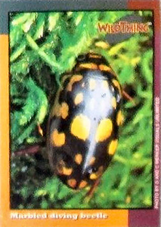 These cards feature photos of living plants and animals plus some illustrations of extinct reptiles (i.e., dinosaurs and pterosaurs).  The cards were included inside various magazines such as Wild Outdoor World (unbranded) and Falcon (branded) publications.  The cards came in perforated, nine-card tear out sheets.