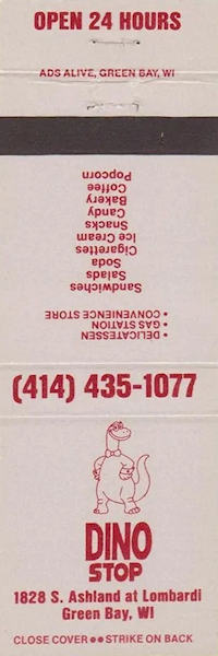Dino Stop (Green Bay, WI) Advertising Matchbook Covers