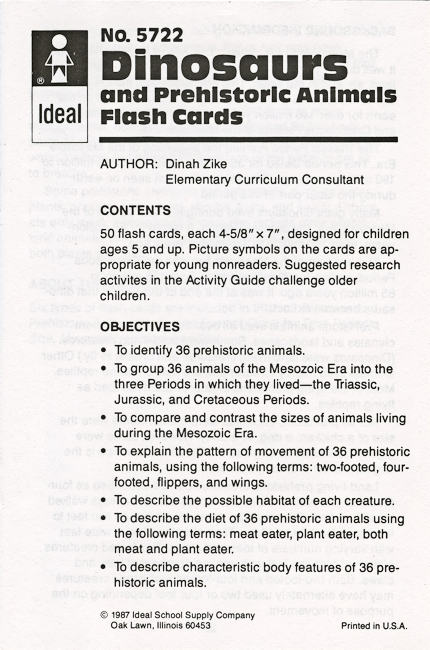 Ideal School Supply Company 2000 Dinosaur & Prehistoric Animals Flash Cards