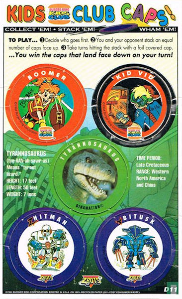 Burger King 1993 Kids Club Caps POGS