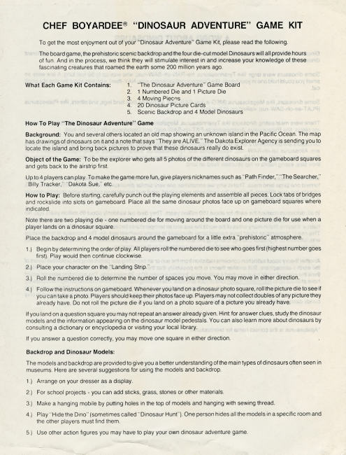 Chef Boyardee 1988 Dinosaur Adventure Game