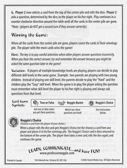 Instruction Sheet & Game Die (six sides; two each of 1's, 2's, 3's)