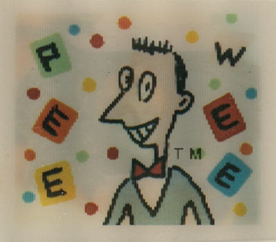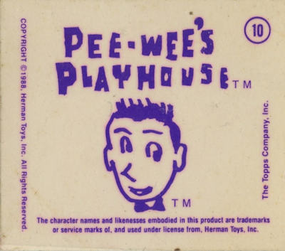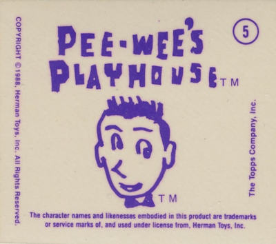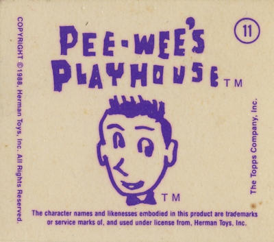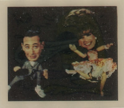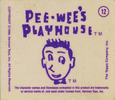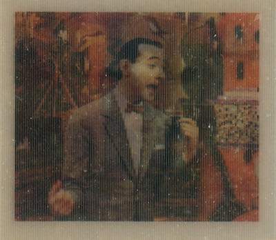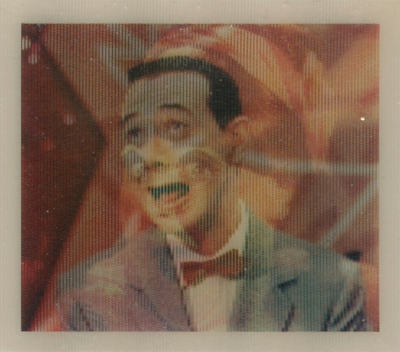 These cards were included in the Topps "Pee Wee's Playhouse Fun Pack" card packages that, in general, included: 1 tattoo sheet, 3 picture cards, 1 sticker, 1 wiggle toy, and 1 activity card.  This series of cards are thick "lenticular" double-imaged cards that change as you tilt or "wiggle" them.