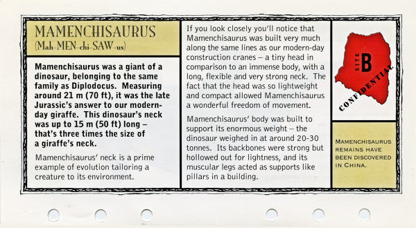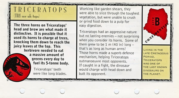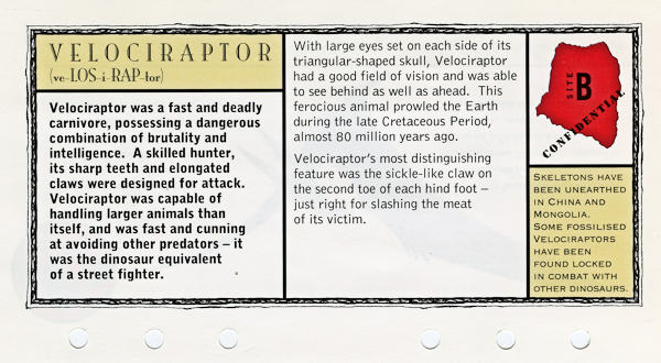 The Lost World: Jurassic Park Data File Fact Sheets