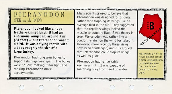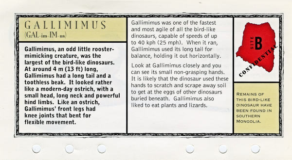 Fun Fax released "The Lost World: Jurassic Park Data File" mini-binder in 1997 as a tie-in with the movie of the same name.  The mini-binder contains the six sections listed below.  I do not know if every mini-binder contains the exact same contents.  For the purposes of this site, I've only included relevant Fact Sheets and the Tetley tea coin holders (see Tetley tea listings) but there is a lot of funs stuff to be found.