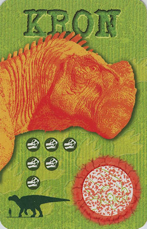 These cards make up the Dinosaur Dino Clash Game which is essentially a card battle game based on the number of 'skulls' on each card.   An interesting and somewhat devious (from a sales perspective) feature of this game is the optional use of 'decoder' cards which are NOT included with the game (see separate Mattel listing in this site).  These decoder cards expose hidden symbols (i.e., dino, lemur, volcano, pterodactyl & comet) which provide game power-ups but the cards were only available inside packages of specially marked Disney Dinosaur toys.