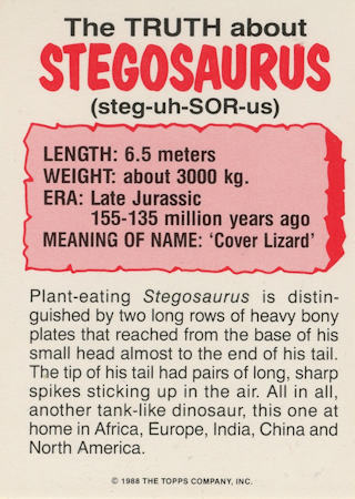 1560 Dinosaurs Attack! -- 1 3-1/2" x 2-1/2" n/a Stegosaurus