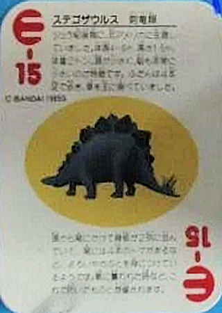 These cards were inserted inside of packages of Bandai Tamagoras egg-shaped toys which "transform" (foldout) into various animals including prehistoric beasts.