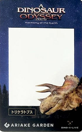 From what I can tell, these predominately clear plastic cards were handed out (or sold?) at the 2025 performances of Dino-A-Live: A Dinosaur Odyssey ('Harmony of the Earth') presented at the Ariake Garden, a Japanese shopping and entertainment complex in Tokyo Bay (Kantō region, Japan).  My assumption is that these are clear so that attendees of the show can display photos of themselves with the animatronic dinosaurs.