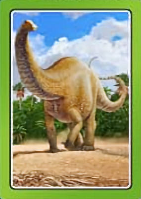 These cards comprise the 'Smart Cards Dinosaurs' deck which can be used in seven different games including Trumps, Rummy, Happy Families, and Snatch.   There are 25 cards with images of different dinosaurs (prehistoric animals) pictured on them, each of which has color-coded borders as differentiation between animal types; aquatic, armored, 'Gentle Giants' (i.e., large quadrupeds), winged animals, and carnivores.
