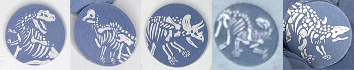 These cards serve as caller tokens to track what dinosaur has been called.  They are the equivalent of the numbered/lettered Ping-Pong balls used at Bingo halls.  The round Marker Chits (image below) are used to mark player cards in place of the ink daubers used in traditional Bingo games.
