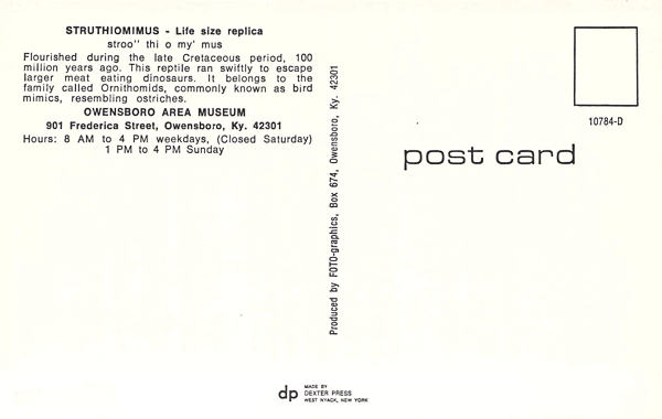 45909539 Extinct Life -- 1 3-1/2" x 5-1/2" n/a Struthiomimus