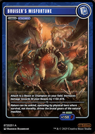According to Creative Beast Studio, "Zoic combines both past and future in ground-shaking primeval battles: testing your wit, strength and strategy. Featuring dinosaurs and prehistoric beasts of Earth’s past and the Dragons of Gaea 2’s future, you can collect, customize and battle in the massive action packed battlegrounds of the Zoic Trading Card Game.  In this game, 2-4 players Battle it out, using a variety of Beast, Biome, Attachment, and Utility Cards to defeat their opponent’s Beasts and be the first to drop the other’s Health Level to 0."