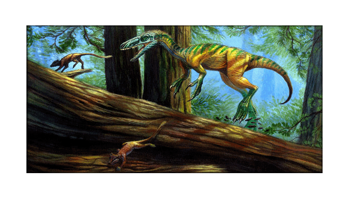 Small carnivorous theropod dinosaurs which lived at various times from the Late Jurassic through the Early Cretaceous.
