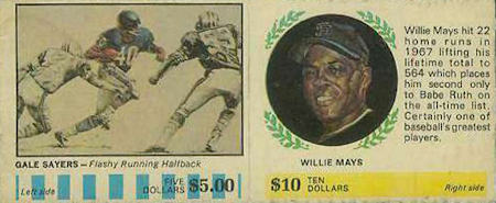 Gale Sayers (Left Side-$5)/Babe Ruth (Right Side-$1)